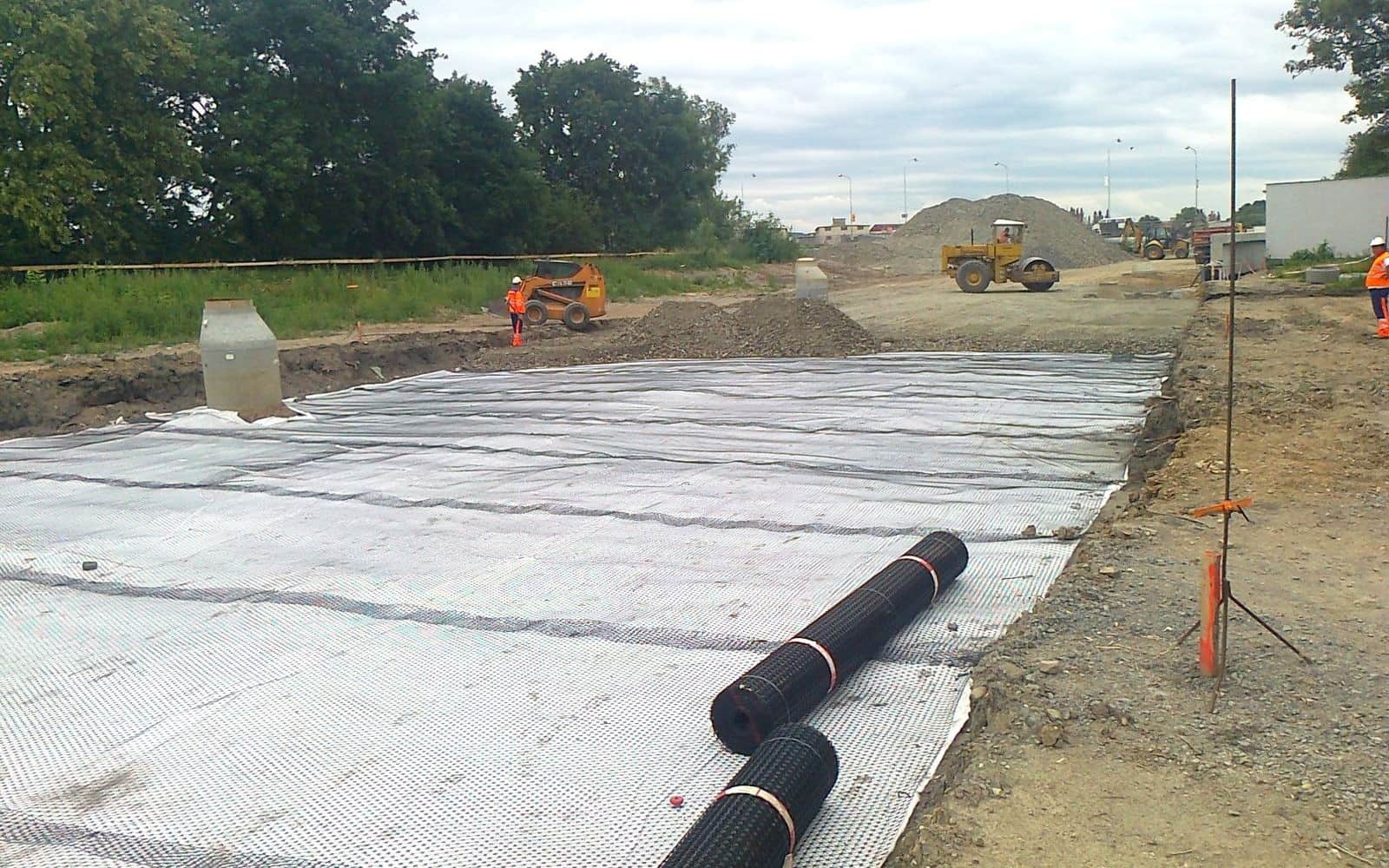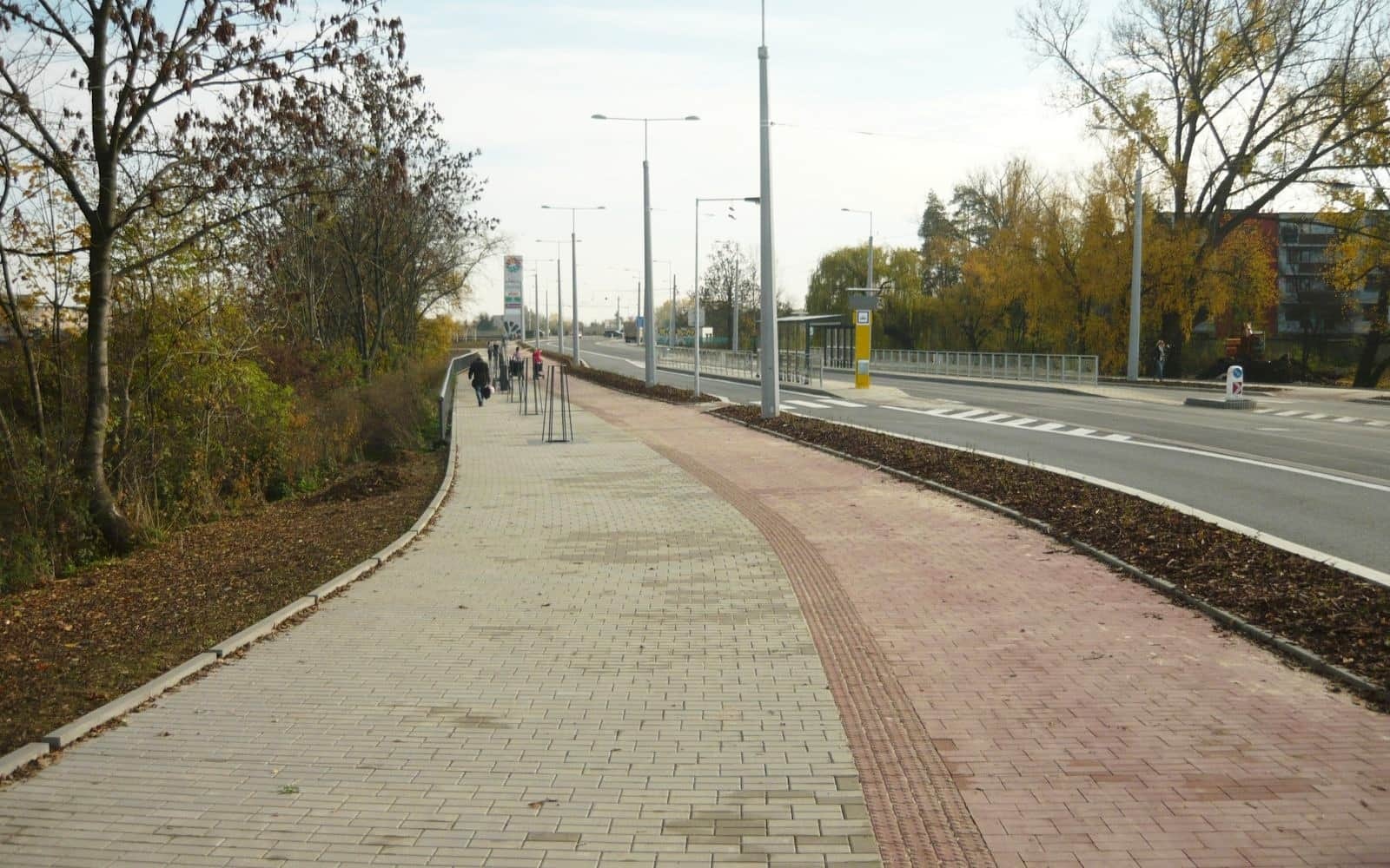 Częścią projektu Šantovka jest również budowa nowej linii tramwajowej, przyległych dróg oraz strefy rekreacyjnej na brzegu Młyńskiego potoku między ulicami Velkomoravská a V Kotlině. W tym obszarze wykonano nasyp na warstwie nasypów, które osiągają miąższość aż 5,5 m. Podłoże jest tu znacznie niejednorodne i konieczne było jego wzmocnienie, aby zapobiec nierównomiernemu osiadaniu.