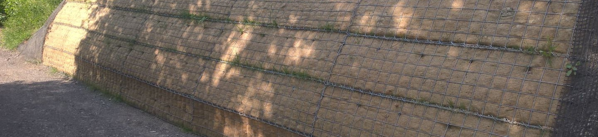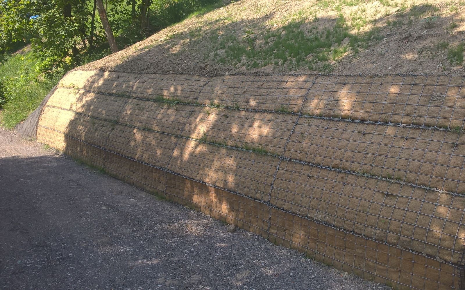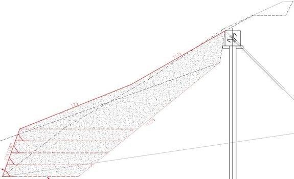 Podczas rekonstrukcji drogi doszło do osunięcia nasypowego zbocza znajdującego się pod jezdnią, które zostało wykonane z drobnoziarnistych gruntów ilastych o nachyleniu około 45°. Sama droga została zabezpieczona przed dalszym osuwaniem za pomocą kotwionej ścianki palowej.