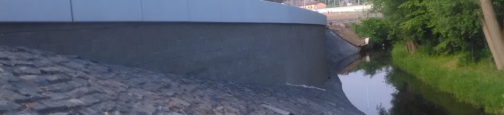 Děčín – Vilsnice, mur oporowy z gruntu zbrojonego wzdłuż potoku Jílovský