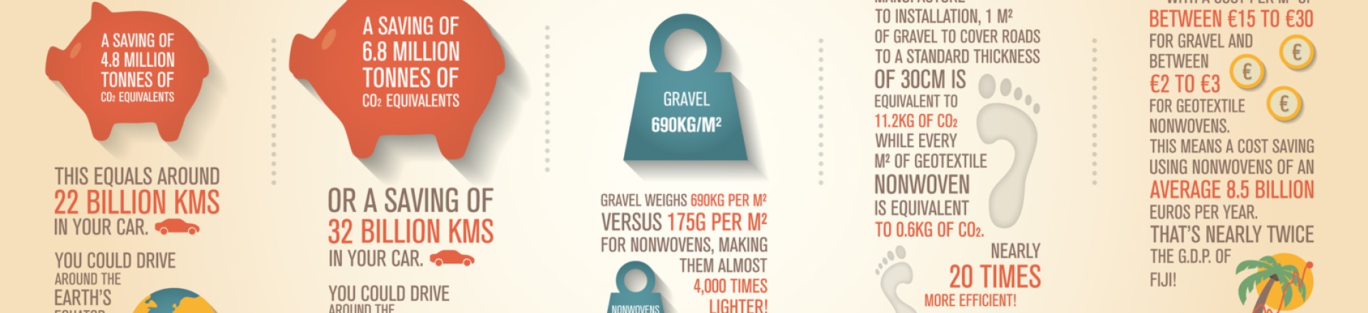 Każdego roku na całym świecie produkuje się i sprzedaje około 750 km2 geowłóknin, a 60% tej ilości wykorzystywane jest przy budowie dróg. A jaka jest ich największa korzyść? Zobacz udaną infografikę.