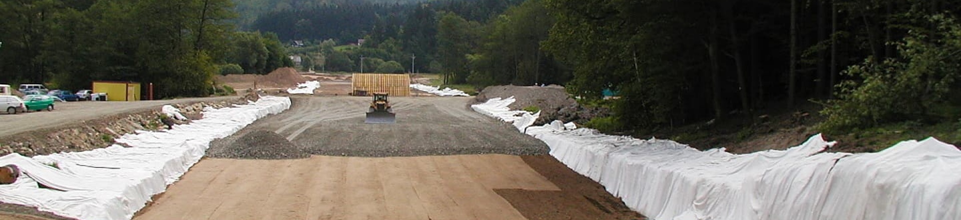 Instalacja włókniny polipropylenowej do separacji warstw konstrukcyjnych drogi dojazdowej do portalu tunelu Ovčiarsko – Hričovské Podhradie.