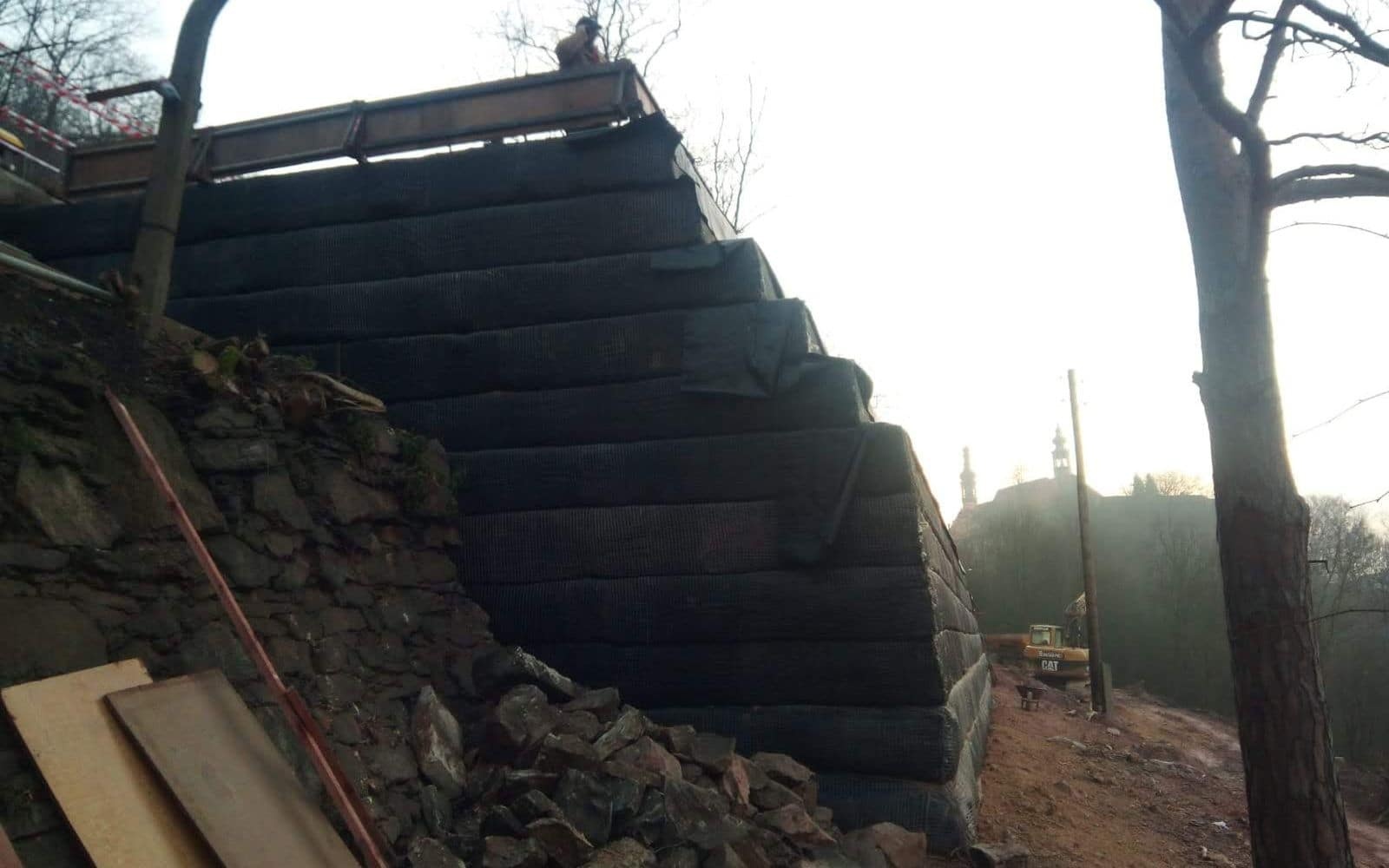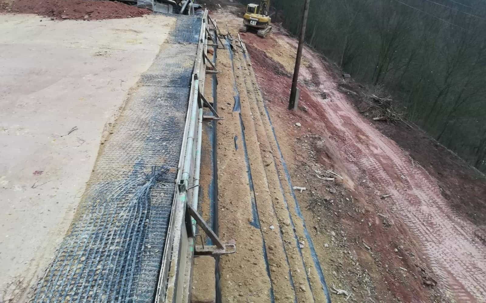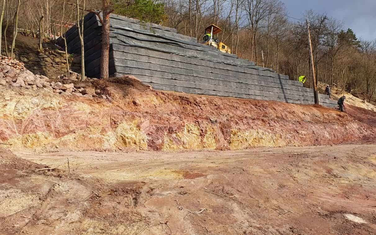 Przed realizacją budowy domu jednorodzinnego w Kadani konieczne było wykonanie zjazdu na pochyłą działkę. Różnicę wysokości rozwiązano za pomocą konstrukcji zbrojonej.