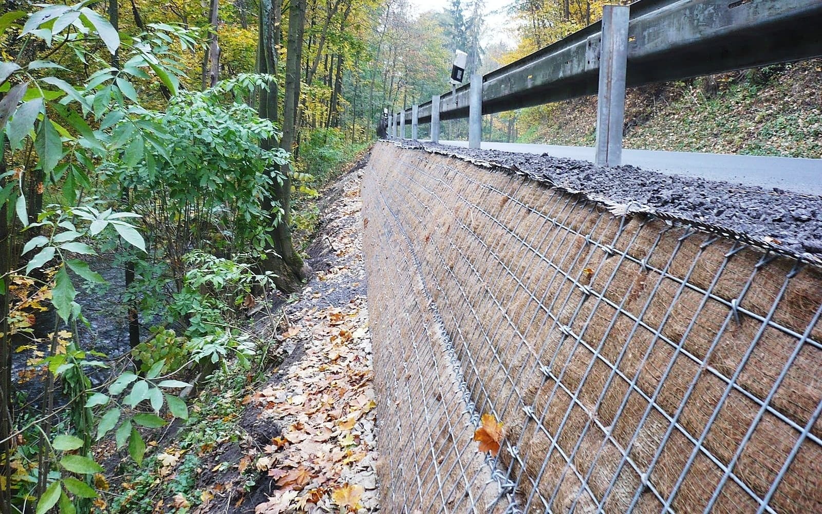 Po intensywnych opadach woda zmyła część drogi nad rzeką Otavą. Do szybkiej, taniej i prostej naprawy w utrudnionych warunkach dostępowych użyto systemu oporowego z zieloną elewacją Tensartech GreenSlope.