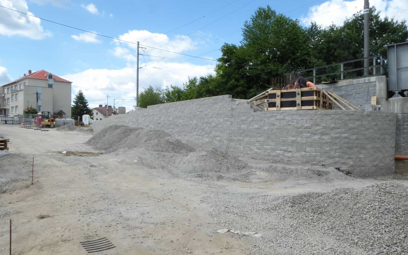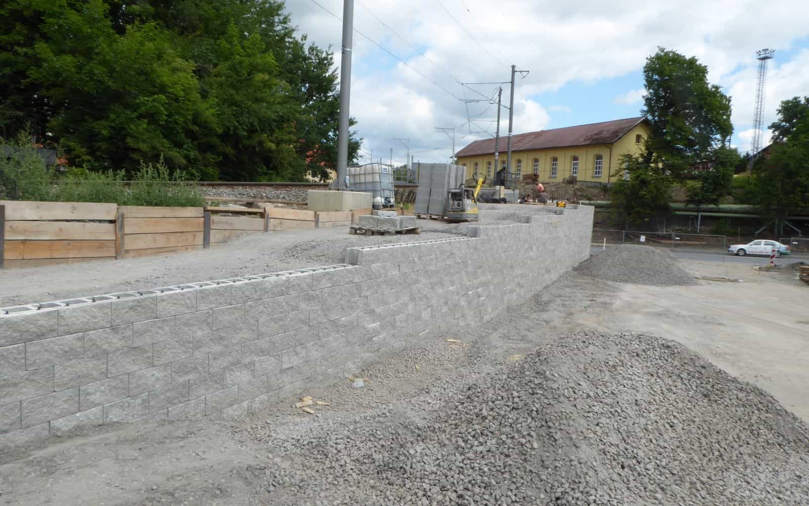 Ściana oporowa kładki nad linią kolejową Tábor – Bechyně