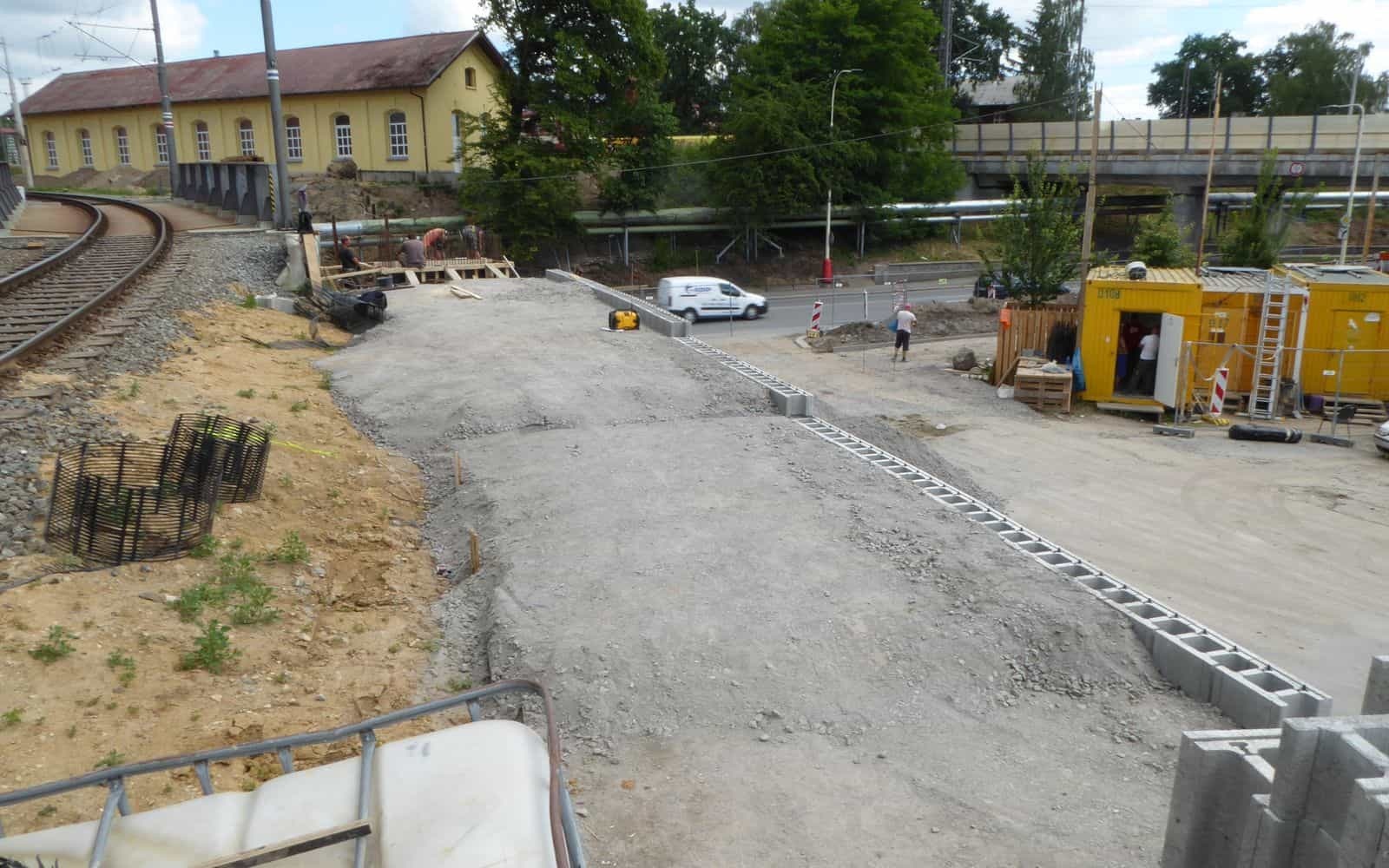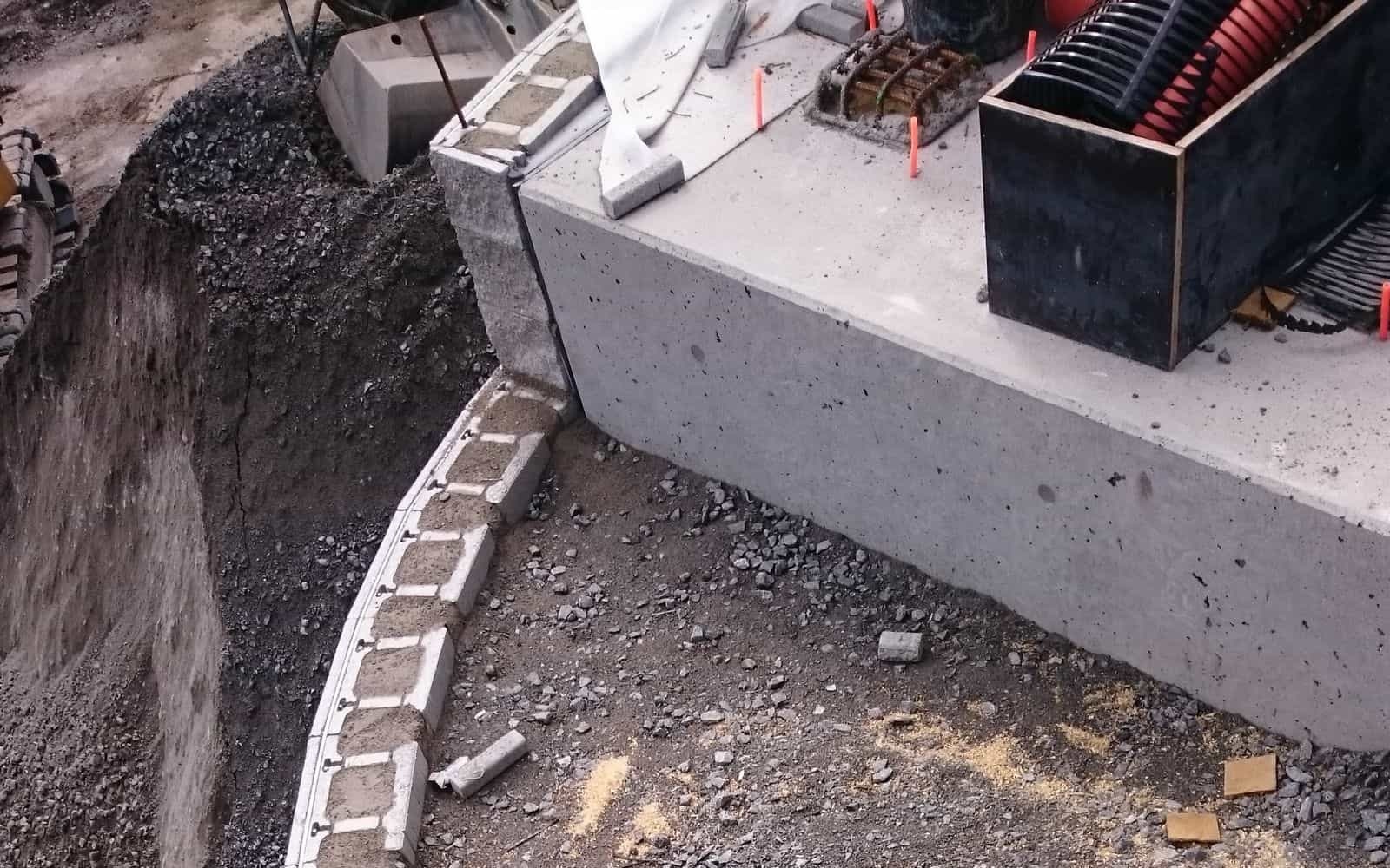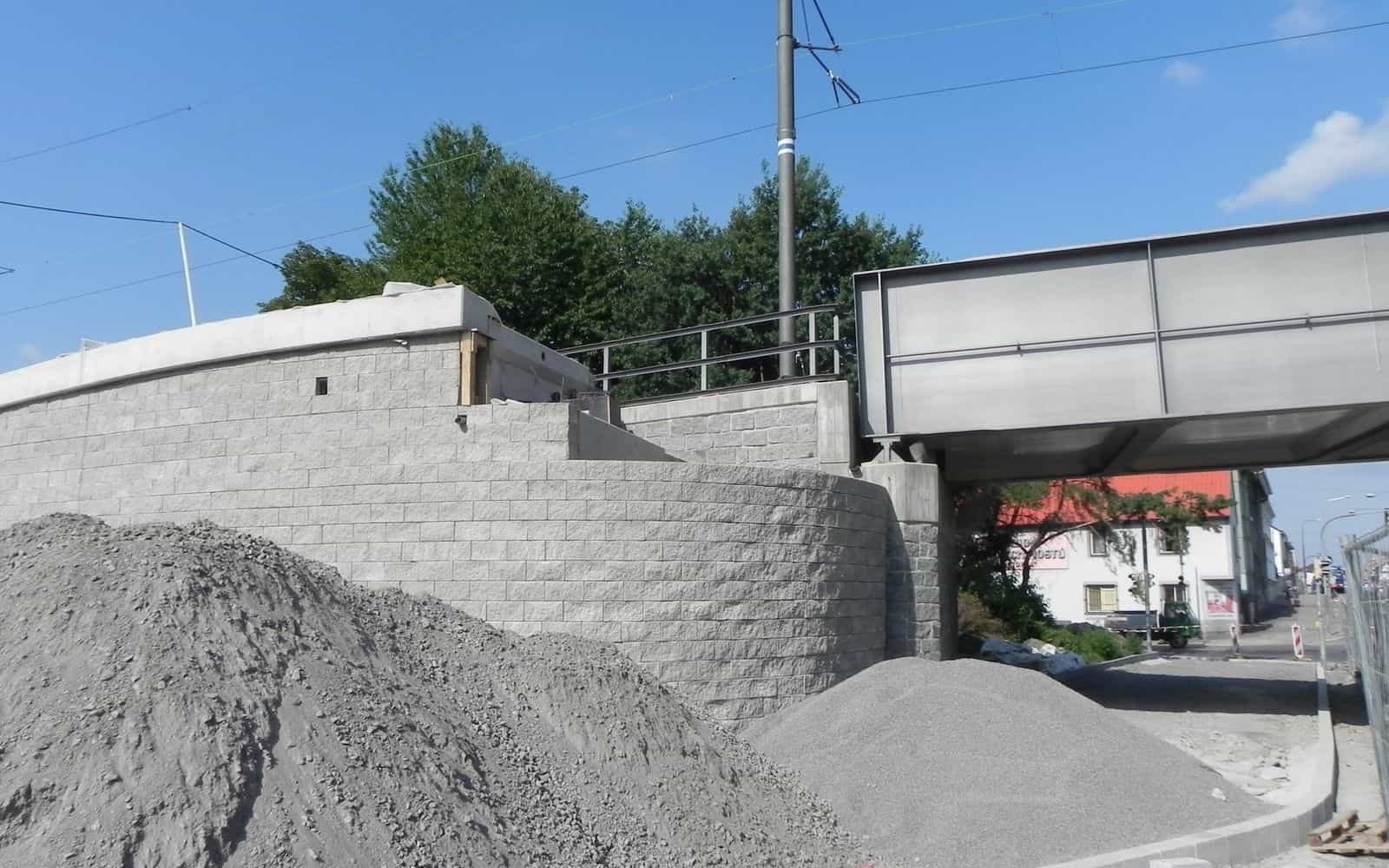 Aby zapewnić różnicę wysokości między poszczególnymi odgałęzieniami dostępu do kładki, wykonano nową ścianę oporową z gruntu zbrojonego.