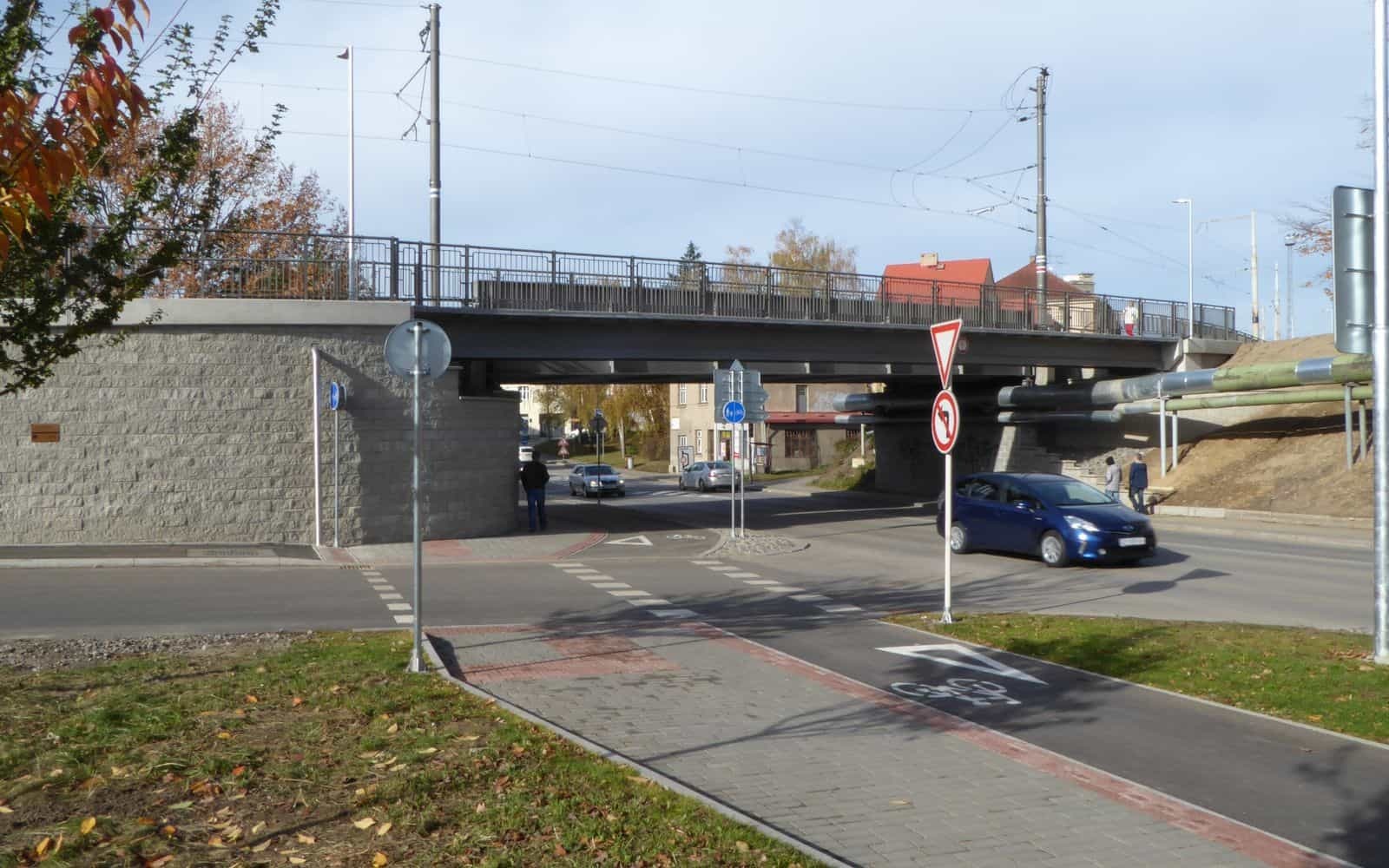 Aby zapewnić różnicę wysokości między poszczególnymi odgałęzieniami dostępu do kładki, wykonano nową ścianę oporową z gruntu zbrojonego.