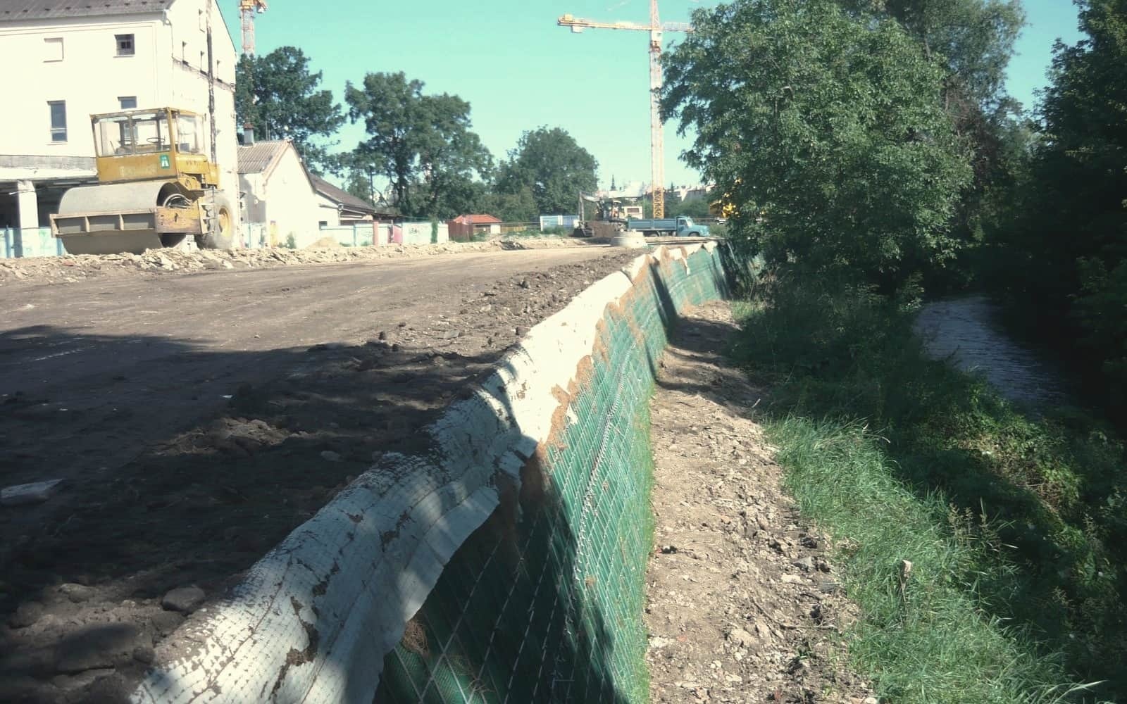 Elementem projektu Šantovka są również strefy wypoczynkowe na brzegu Młyńskiego Potoku, a przede wszystkim nowa linia tramwajowa łącząca historyczne centrum z osiedlem Nové Sady na południu miasta. W tej lokalizacji konieczne było więc zaprojektowanie nasypu dla torowiska tramwajowego oraz przyległej komunikacji dla pieszych i rowerzystów o długości 131,2 m i wysokości 2,04–3,40 m.