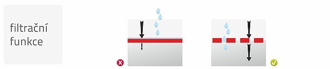 Oprócz separacji poszczególnych warstw geowłóknina musi być zdolna zapewnić bezpieczny przepływ wody przez układ warstw, bez nadmiernego wzrostu ciśnienia wody w porach gruntu, a jednocześnie zapobiegać unoszeniu drobnych cząstek do warstwy chronionej. Wymagania te są zazwyczaj oceniane łącznie.