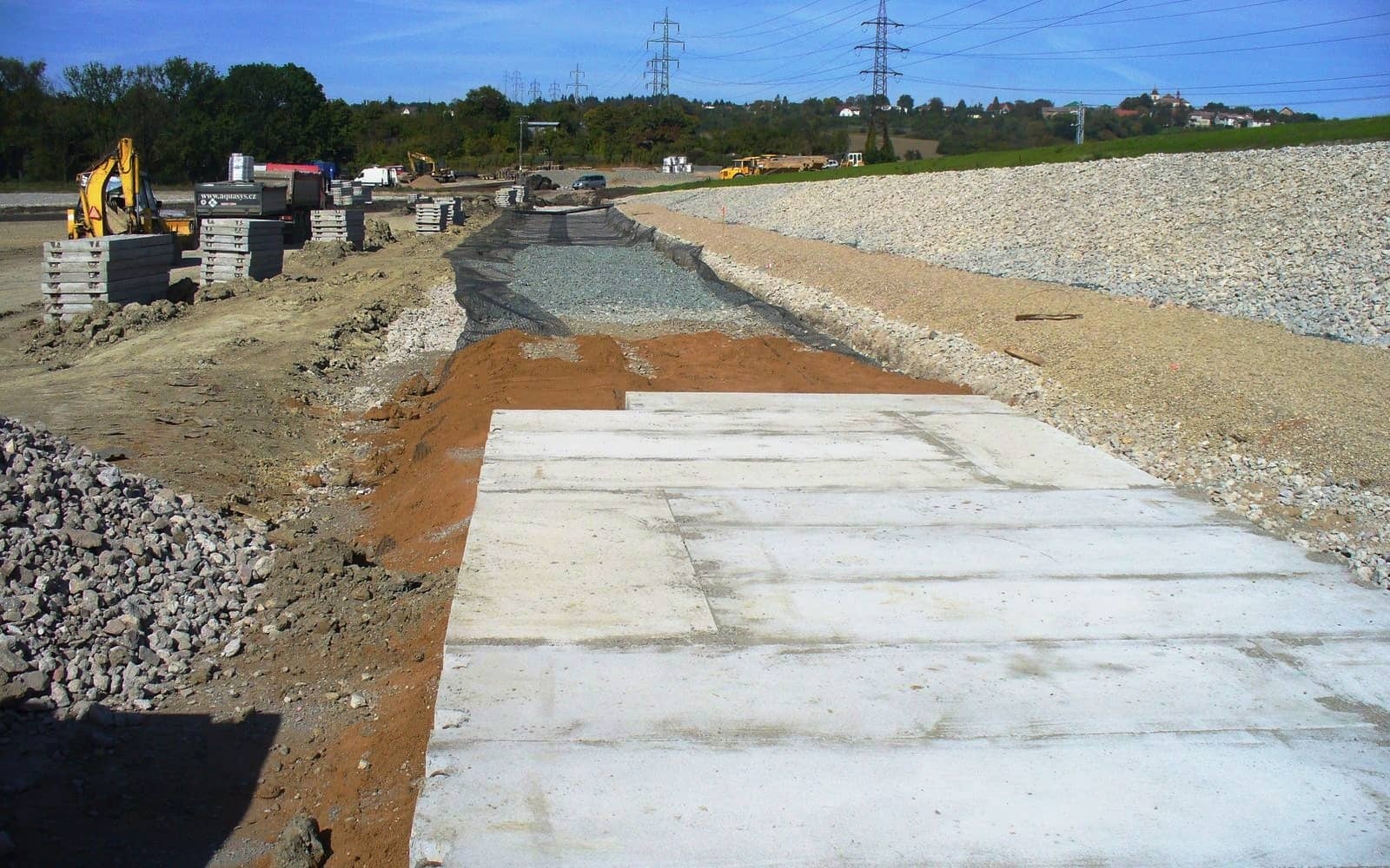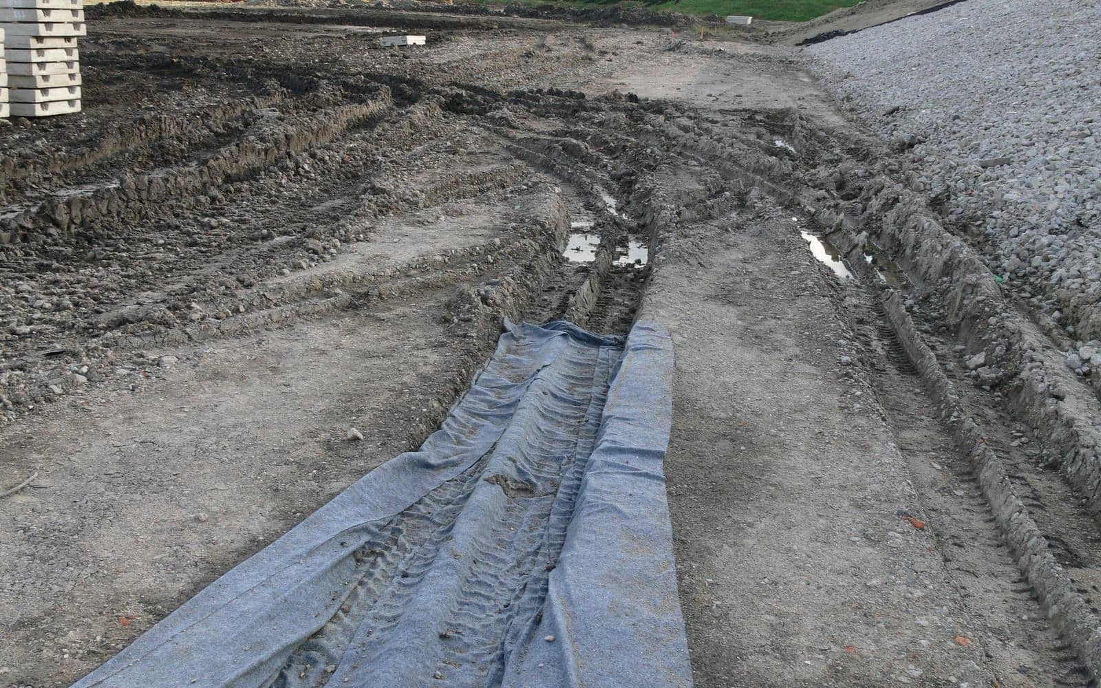 Podczas wywożenia osadów ze zbiornika sedymentacyjnego konieczne jest, aby ciężki sprzęt mógł wjechać na dno zbiornika i nie ugrzązł. Dno zbiornika zostało ustabilizowane poduszką żwirową oraz troosiowymi georusztami. Na ustabilizowane podłoże ułożono płyty betonowe, które tworzą stabilną i wytrzymałą drogę.