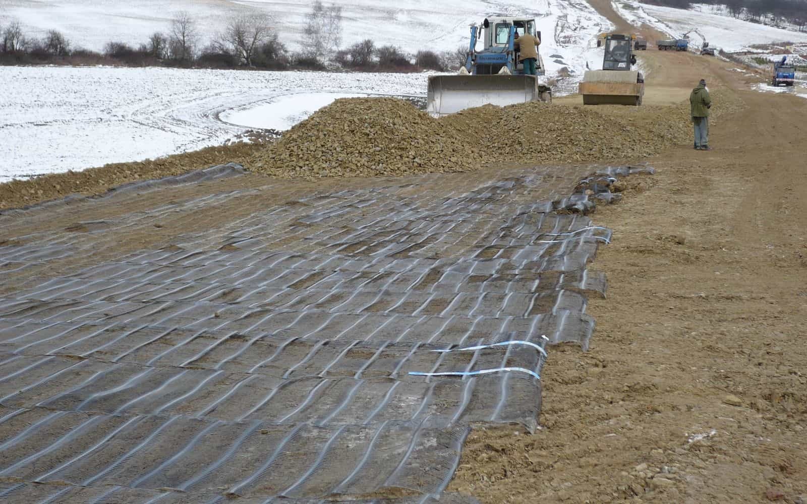 Podczas budowy korpusu nasypu na obwodnicy miejscowości Lány inwestor wraz z wykonawcą chcieli wykorzystać lokalny materiał zasypowy, który miał niewystarczające parametry.