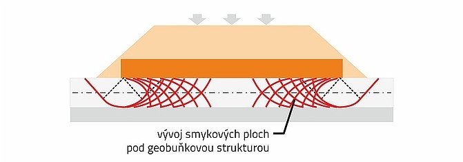 Tak utworzona trójwymiarowa quasi-jednorodna struktura fundamentowa zapewnia w konstrukcji, że w nasypie nie ujawniają się zróżnicowane właściwości podłoża, ponieważ struktura ta nie dopuszcza, względnie praktycznie eliminuje nierównomierne osiadania oraz poziome przemieszczenia w podłożu. Wtórnymi korzyściami struktury geokomórkowej są: