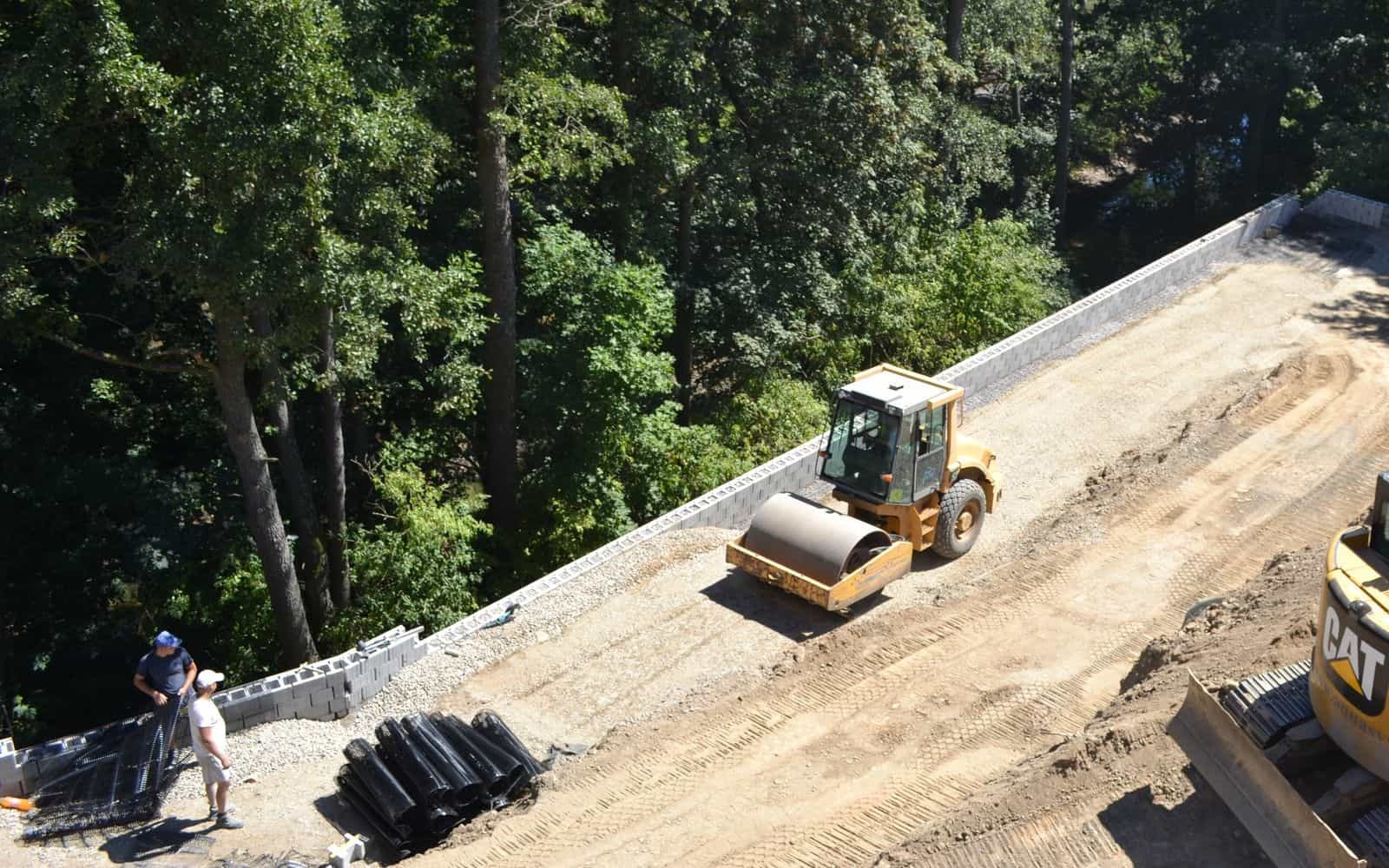 Žďár nad Sázavou, nowa budowa domu jednorodzinnego, ściana oporowa z gruntu zbrojonego