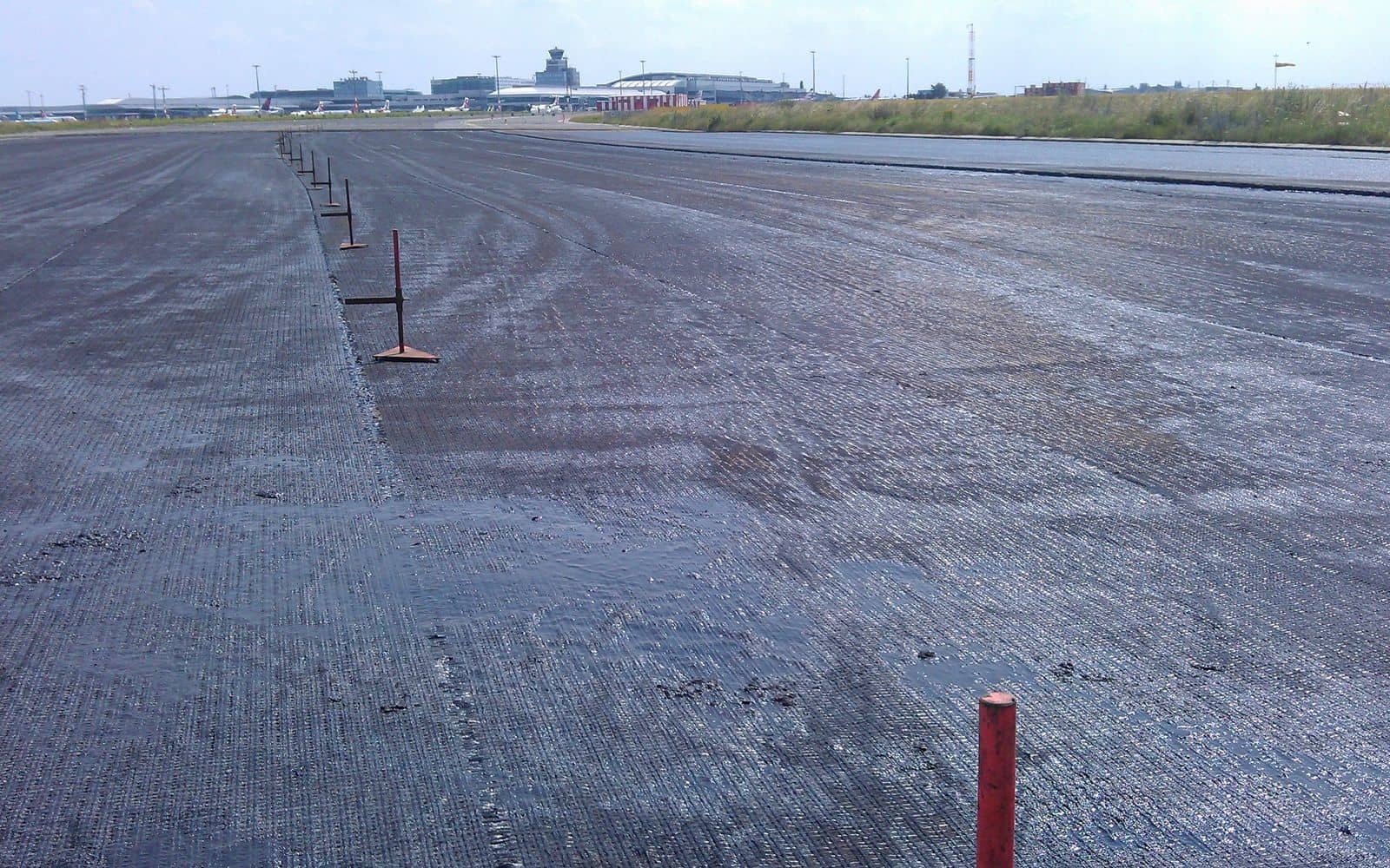 Podczas rekonstrukcji pasów startowych lotniska Václava Havla w Pradze Ruzyni zastosowano kompozyt do wzmocnienia warstw bitumicznych.